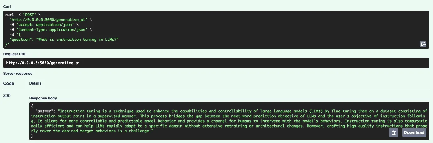 Đểkhởi động API, chúng ta duy chuyển đến thư mục root của source code trong terminal (trong trường hợp của bài viết sẽlà thư mục rag_langchain/), sửdụng lệnh sau (sau khi đã cài đặt các thư viện cần thiết cũng như vector database). Lưu ý, nếu bịlỗi do port đã được sửdụng trong máy của bạn thì có thểthay đổi sang một port khác: